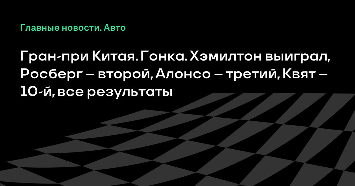 Гран-при Китая. Гонка. Хэмилтон выиграл, Росберг – второй, Алонсо – третий, Квят – 10-й, все результаты