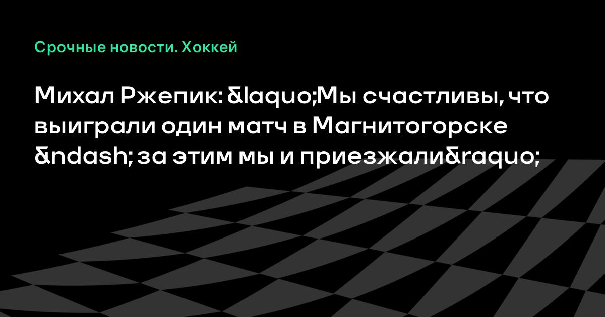 Мы счастливы, что выиграли один матч в Магнитогорске, за этим мы и приезжали. Теперь нас ждут матчи в Праге, где команду будут поддерживать 15 тысяч болельщиков, это должно нам помочь», – сказал Ржепик.