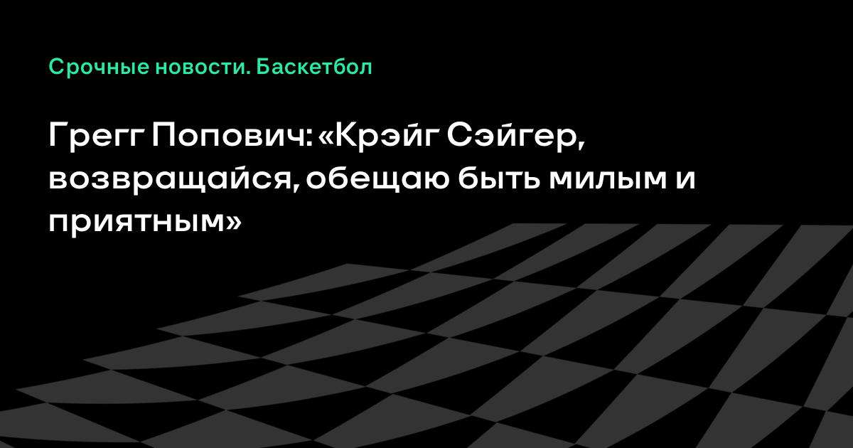 Грегг Попович: «Крэйг Сэйгер, возвращайся, обещаю быть милым и приятным»