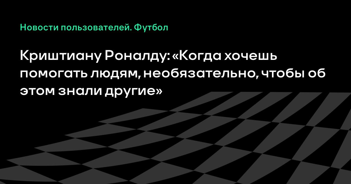 Криштиану Роналду: «Когда хочешь помогать людям, необязательно, чтобы об этом знали другие»