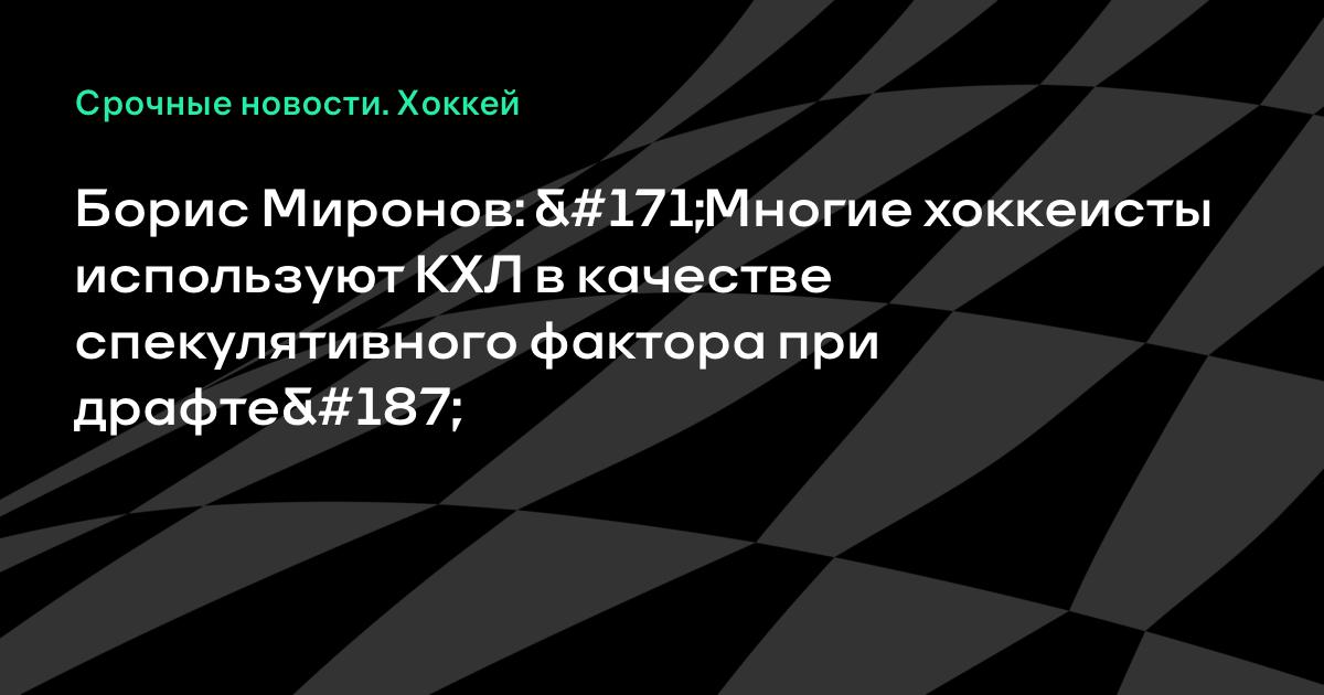 Борис Миронов: «Многие хоккеисты используют КХЛ в качестве спекулятивного фактора при драфте»