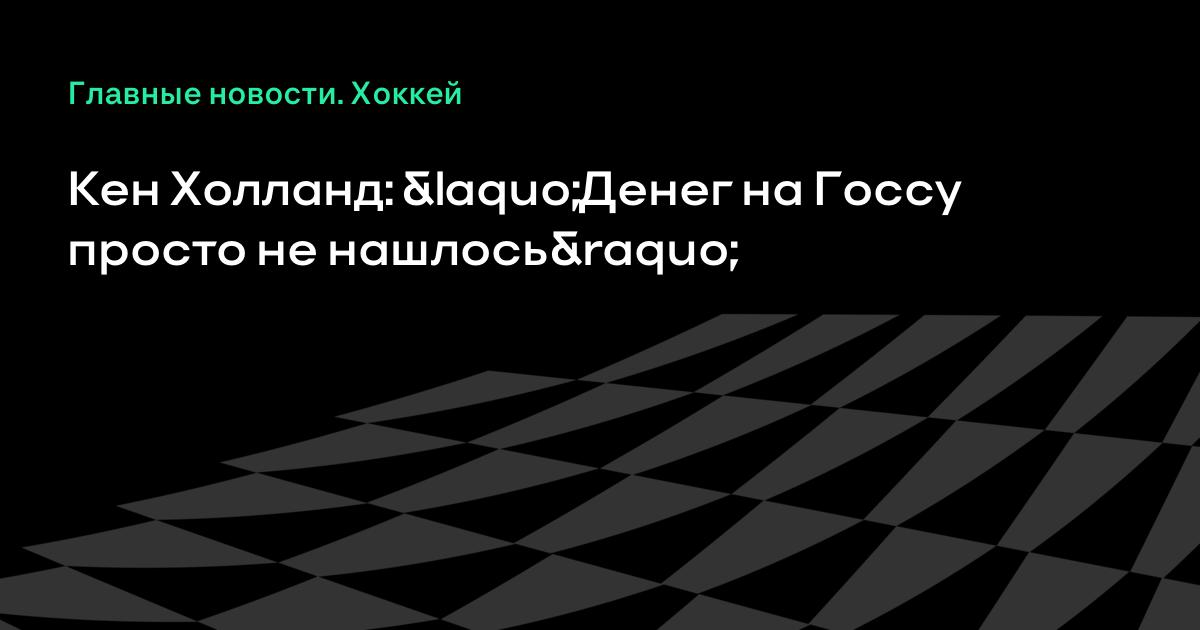 Кен Холланд: «Денег на Госсу просто не нашлось»