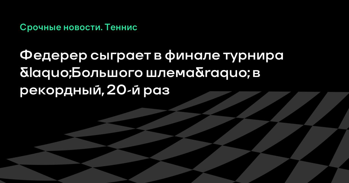 Федерер сыграет в финале турнира «Большого шлема» в рекордный, 20-й раз