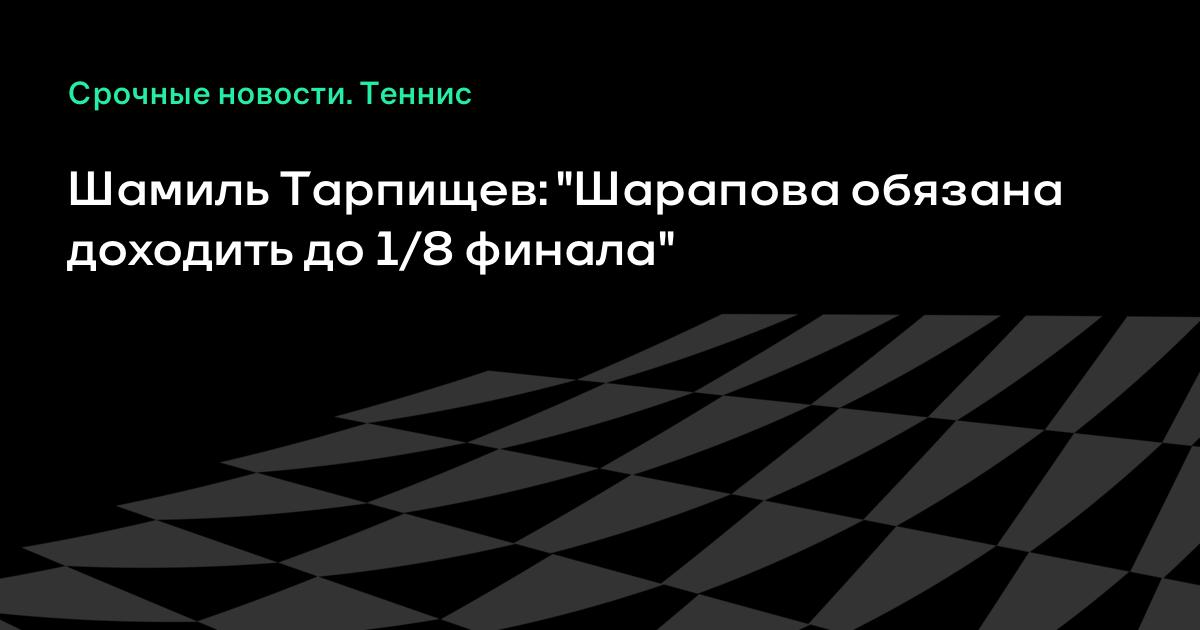 Президент Федерации тенниса России, капитан сборной России в Кубке федераций Шамиль Тарпищев считает, что Мария Шарапова обязана выйти в 1/8 финала Открытого чемпионата Австралии. Об этом он заявил в интервью РИА Новости, анализируя результаты жеребьевки первого в сезоне турнира серии Большого Шлема. Согласно этой жеребьевке, Шарапова, посеянная под первым номером, стартовый матч проведет с француженкой Камиль Пин.