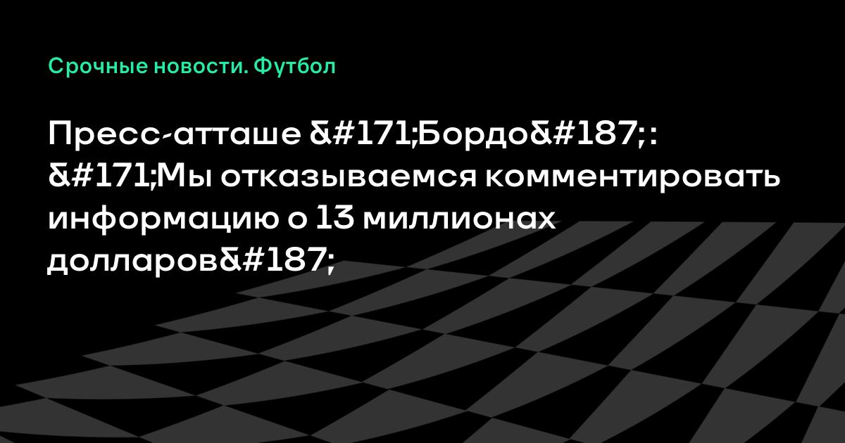 Пресс-атташе «Бордо» : «Мы отказываемся комментировать информацию о 13 миллионах долларов»