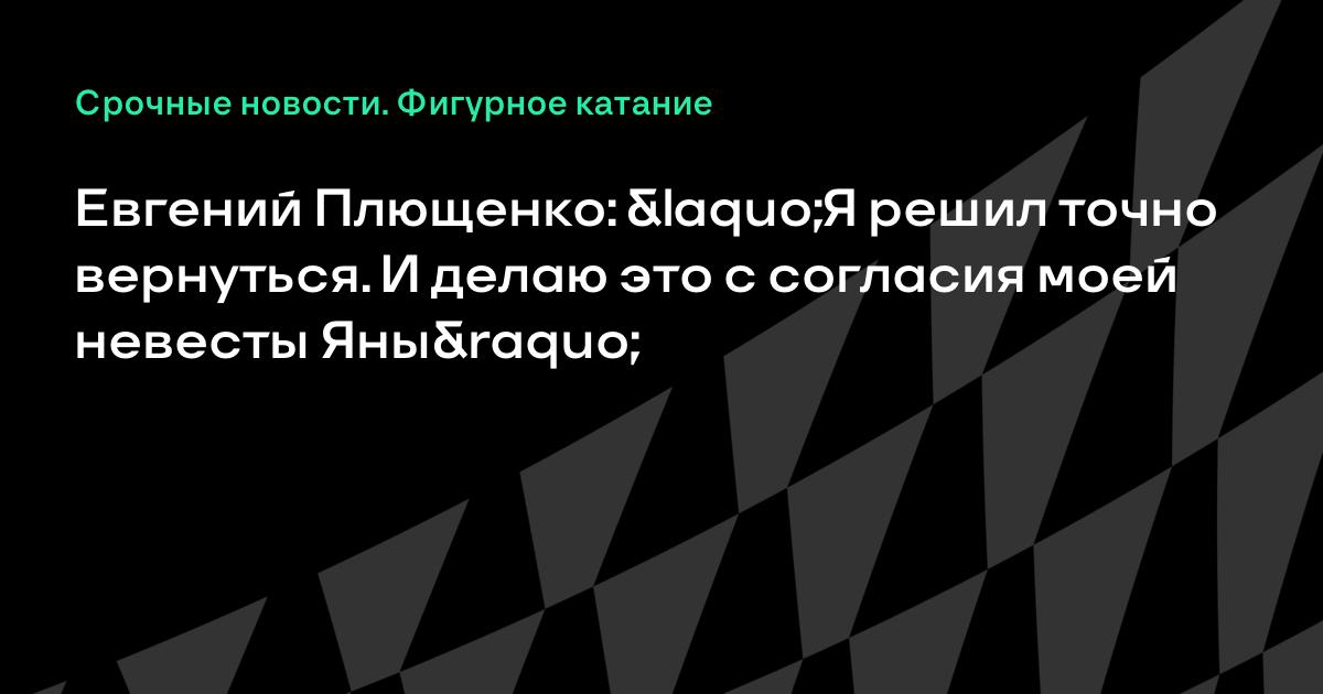 Евгений Плющенко: «Я решил точно вернуться. И делаю это с согласия моей невесты Яны»