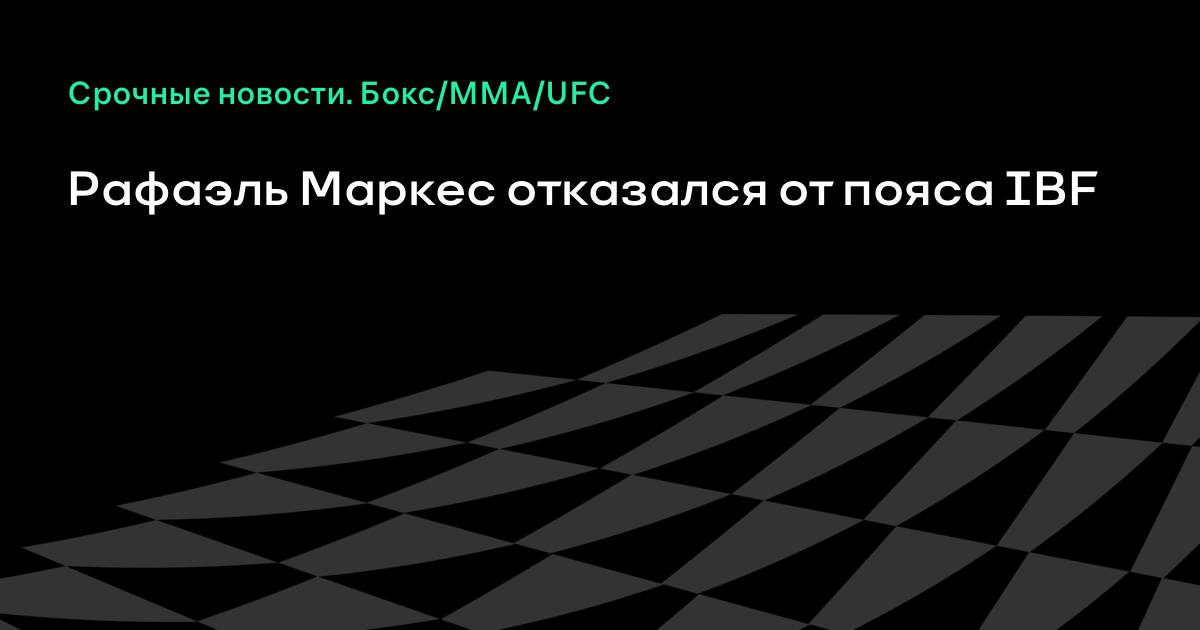 Чемпион IBF в легчайшем весе Рафаэль Маркес отказался от своего титула, сообщает Boxingscene со ссылкой на промоутера мексиканца Гари Шоу. Правила IBF запрещают владение поясами в разных категориях, поэтому Маркес принял решение оставить пояс WBC в первом полулегком весе, недавно отобранный им у Исраэля Васкеса.