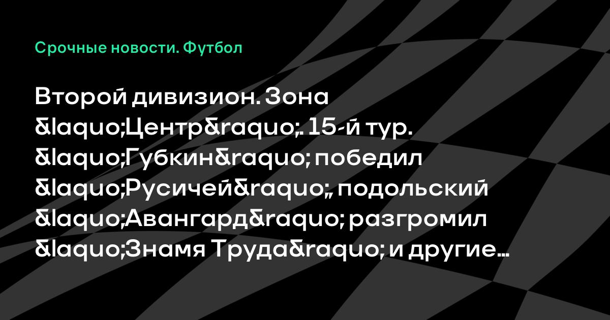 Второй дивизион. Зона «Центр». 15-й тур. «Губкин» победил «Русичей», подольский «Авангард» разгромил «Знамя Труда» и другие результаты