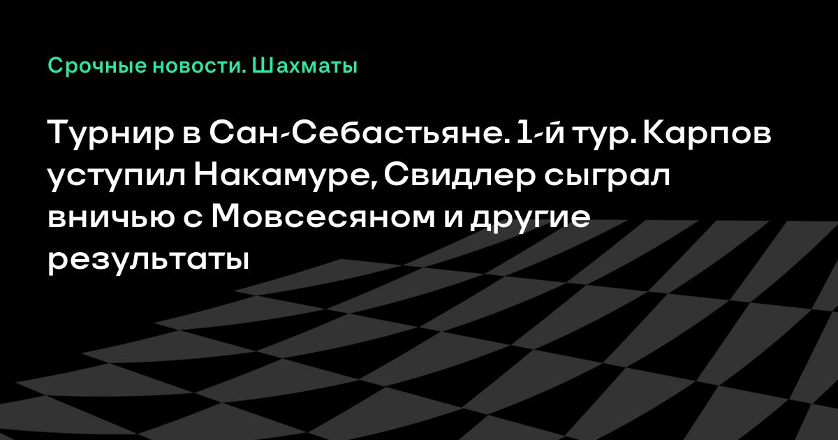 Турнир в Сан-Себастьяне. 1-й тур. Карпов уступил Накамуре, Свидлер сыграл вничью с Мовсесяном и другие результаты