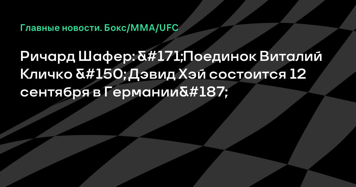 Ричард Шафер: «Поединок Виталий Кличко Дэвид Хэй состоится 12 сентября в Германии»