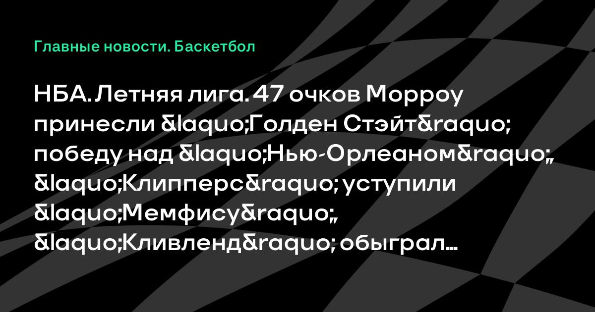 НБА. Летняя лига. 47 очков Морроу принесли «Голден Стэйт» победу над «Нью-Орлеаном», «Клипперс» уступили «Мемфису», «Кливленд» обыграл «Даллас» и другие результаты