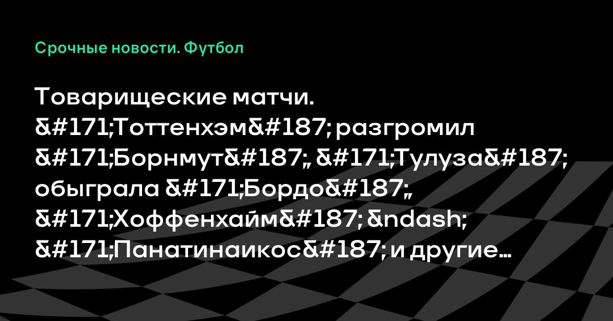 Товарищеские матчи. «Тоттенхэм» разгромил «Борнмут», «Тулуза» обыграла «Бордо», «Хоффенхайм» – «Панатинаикос» и другие результаты