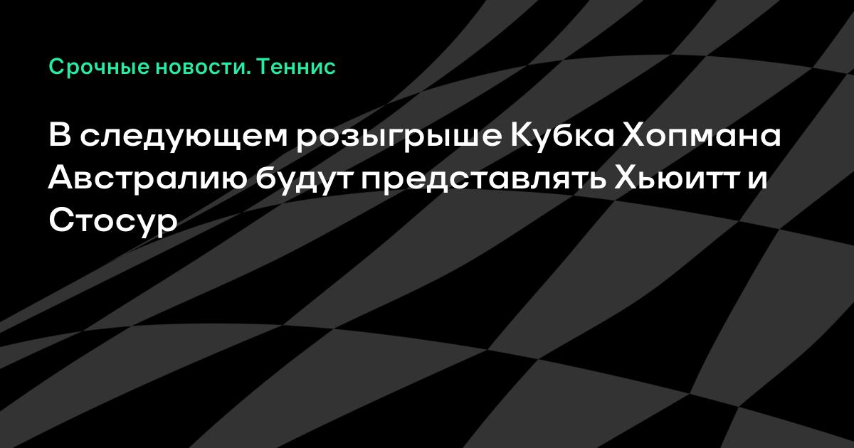 Австралийцы Ллейтон Хьюитт и Саманта Стосур объявили, что будут представлять свою страну в турнире Кубка Хопмана, который пройдет 2-9 января в городе Перт, Австралия, сообщает LiveNews.com.au.