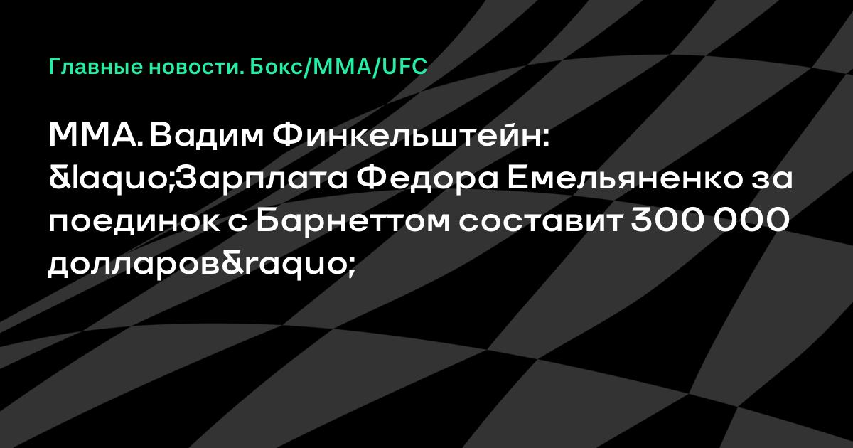 MMA. Вадим Финкельштейн: «Зарплата Федора Емельяненко за поединок с Барнеттом составит 300 000 долларов»