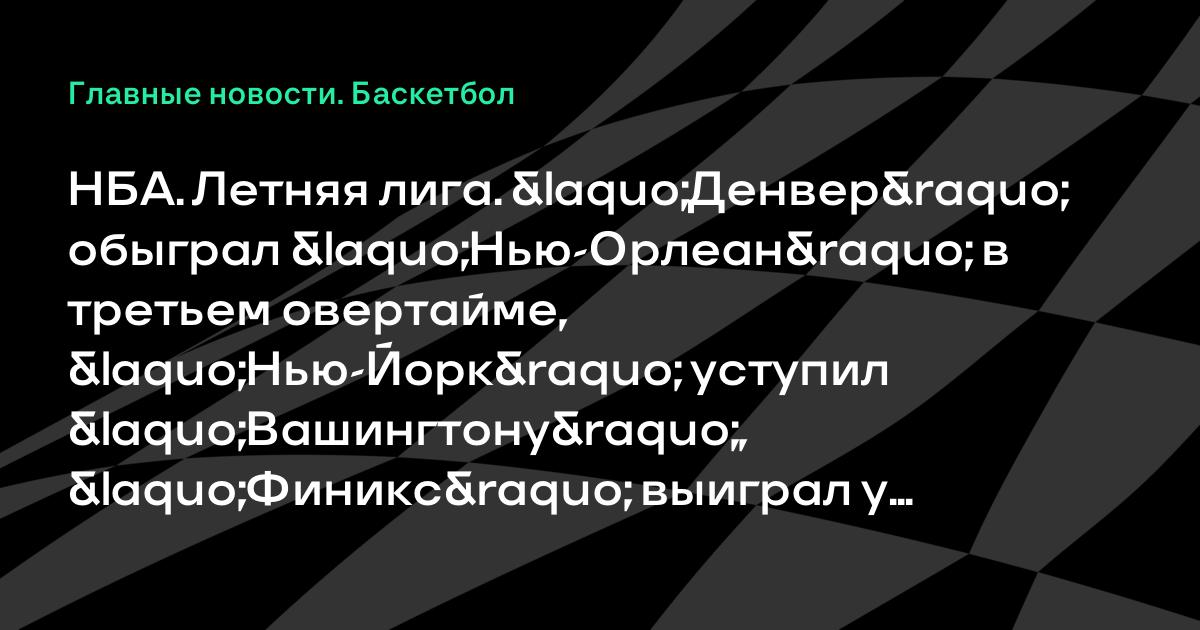 НБА. Летняя лига. «Денвер» обыграл «Нью-Орлеан» в третьем овертайме, «Нью-Йорк» уступил «Вашингтону», «Финикс» выиграл у «Клипперс» и другие результаты