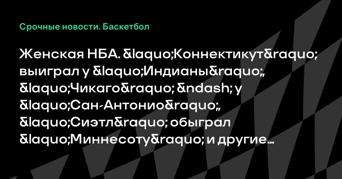 Женская НБА. «Коннектикут» выиграл у «Индианы», «Чикаго» – у «Сан-Антонио», «Сиэтл» обыграл «Миннесоту» и другие результаты