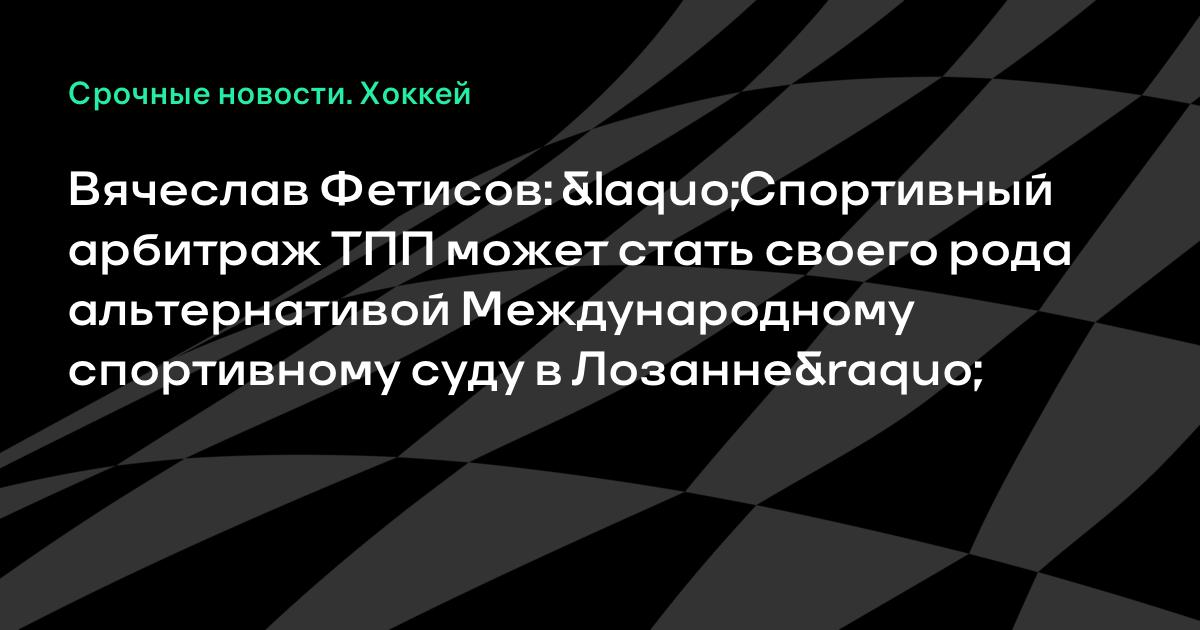 Сегодня многие спорные вопросы решаются в Международном спортивном суде (CAS) в Лозанне. Спортивный арбитраж ТПП может стать своего рода альтернативой CAS. Надеемся, что в преддверии Олимпиады в нем будут рассматриваться не только внутренние дела КХЛ, но и наши взаимоотношения не только в НХЛ, но и с ИИХФ», – сказал Фетисов в интервью «Спорт-Экспрессу».