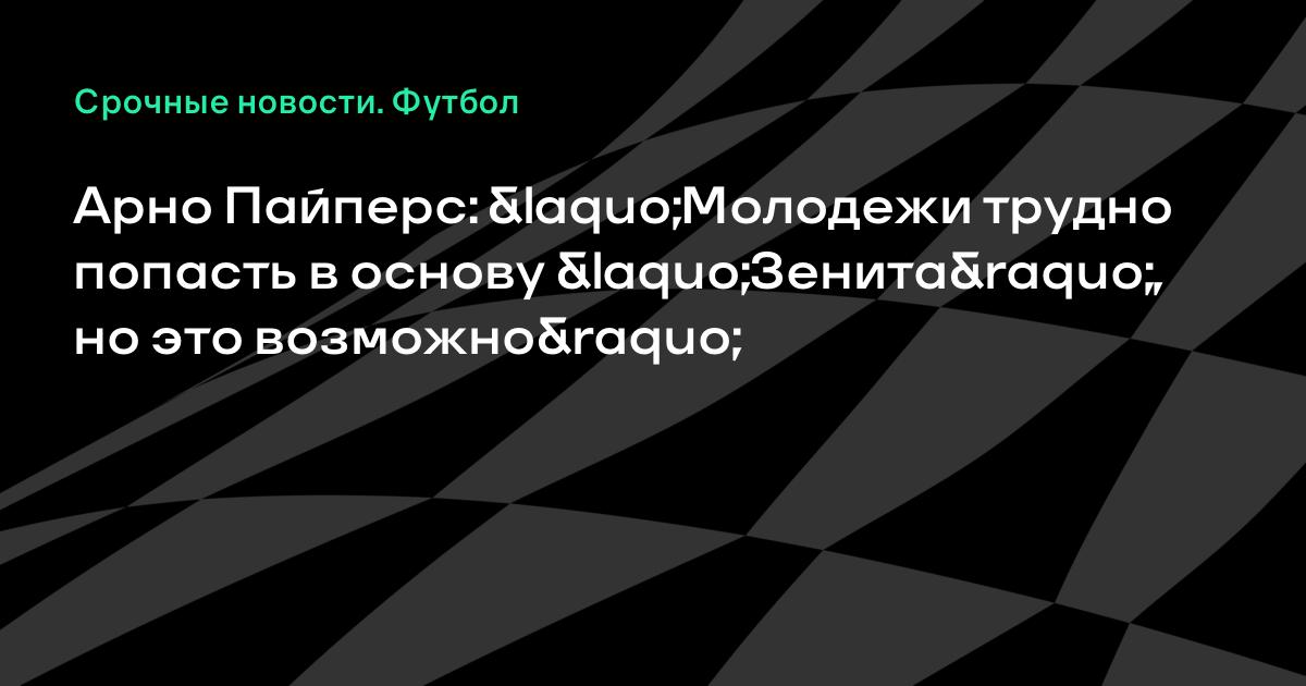 Арно Пайперс: «Молодежи трудно попасть в основу «Зенита», но это возможно»