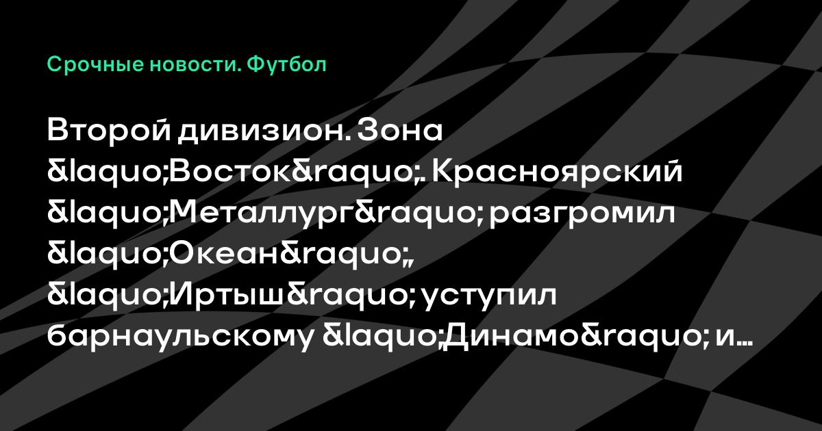 Второй дивизион. Зона «Восток». Красноярский «Металлург» разгромил «Океан», «Иртыш» уступил барнаульскому «Динамо» и другие результаты