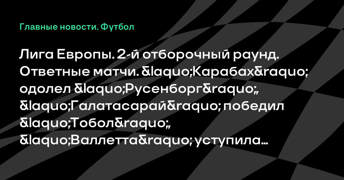 Лига Европы. 2-й отборочный раунд. Ответные матчи. «Карабах» одолел «Русенборг», «Галатасарай» победил «Тобол», «Валлетта» уступила «Сент-Патрику» и другие результаты