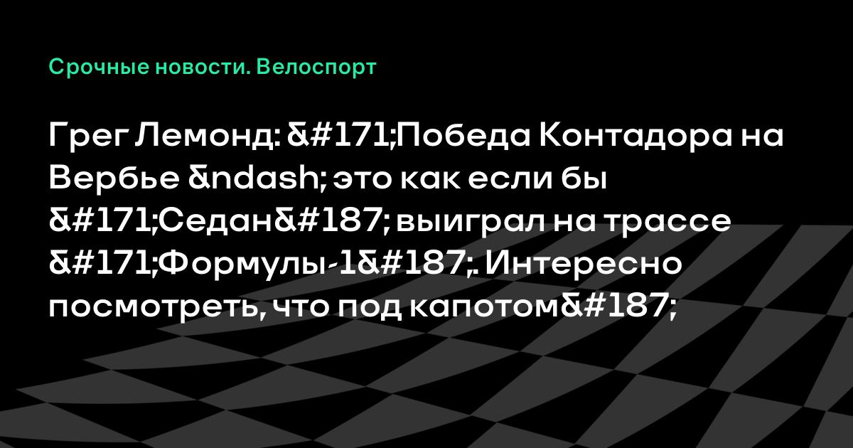 Грег Лемонд: «Победа Контадора на Вербье – это как если бы «Седан» выиграл на трассе «Формулы-1». Интересно посмотреть, что под капотом»
