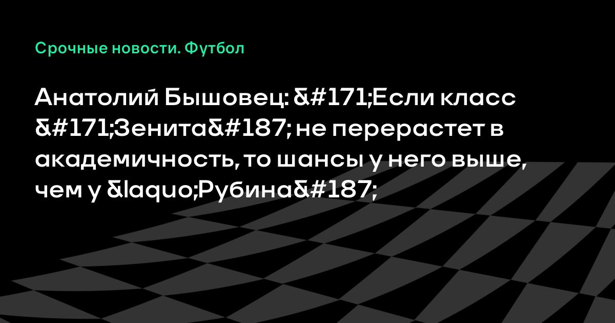 Анатолий Бышовец: «Если класс «Зенита» не перерастет в академичность, то шансы у него выше, чем у «Рубина»