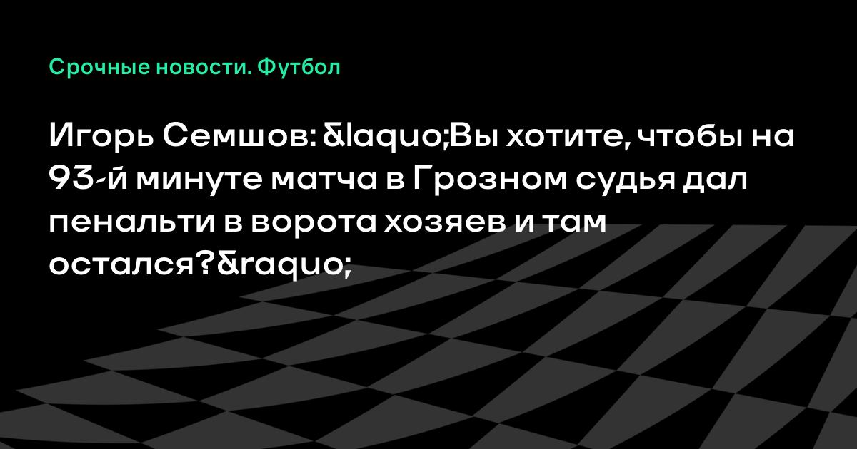 Игорь Семшов: «Вы хотите, чтобы на 93-й минуте матча в Грозном судья дал пенальти в ворота хозяев и там остался?»