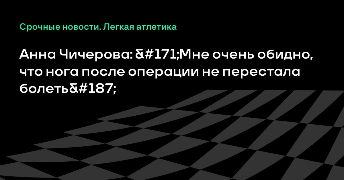О самочувствии: «Конечно, мне очень обидно, что нога после операции не перестала болеть. Получается, что я точно также делаю себе компрессы и испытываю дискомфорт. Словом, ничего не изменилось. Выступление в Париже меня воодушевило. После Мемориала братьев Знаменских я была очень расстроена, переживала, что ничего не получается», рассказала Чичерова в интервью CSKA.ru.