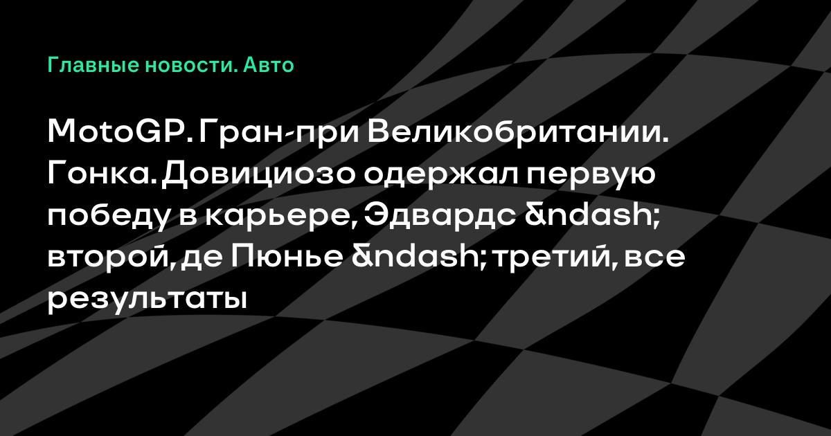 MotoGP. Гран-при Великобритании. Гонка. Довициозо одержал первую победу в карьере, Эдвардс – второй, де Пюнье – третий, все результаты