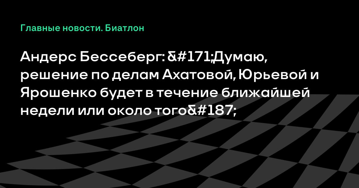 Президент Международного союза биатлонистов (IBU) Андерс Бессеберг сообщил, что IBU в скором времени ожидает получения решения антидопинговой комиссии по делам Альбины Ахатовой, Екатерины Юрьевой и Дмитрия Ярошенко.