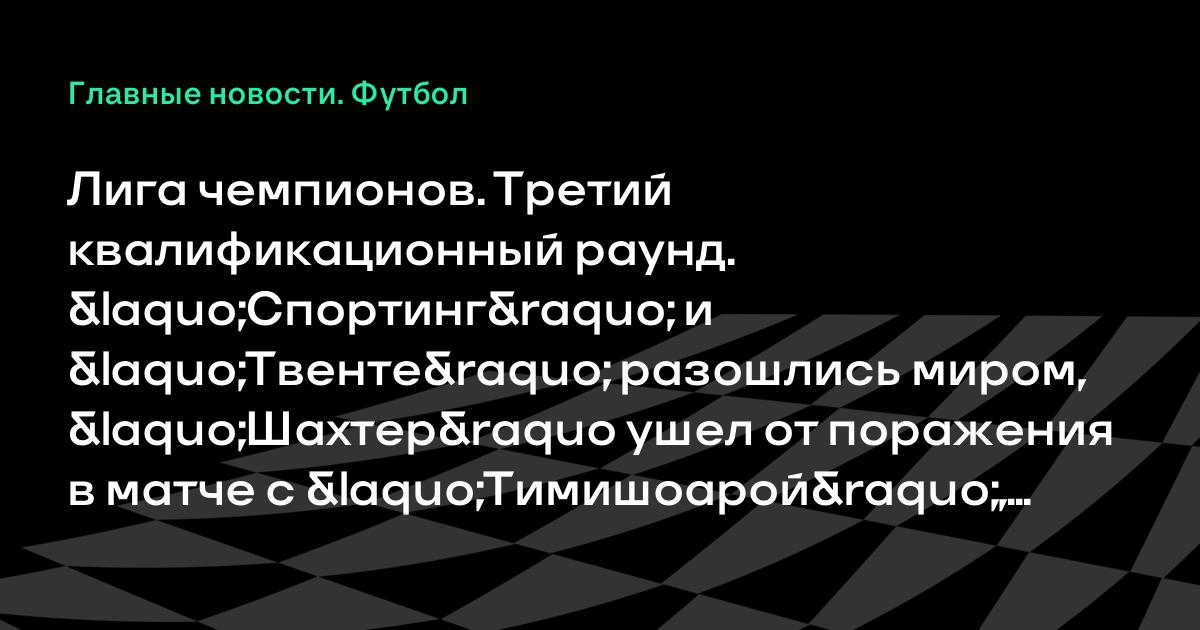Лига чемпионов. Третий квалификационный раунд. «Спортинг» и «Твенте» разошлись миром, «Шахтер» ушел от поражения в матче с «Тимишоарой», «Вентспилс» одолел БАТЭ и другие результаты