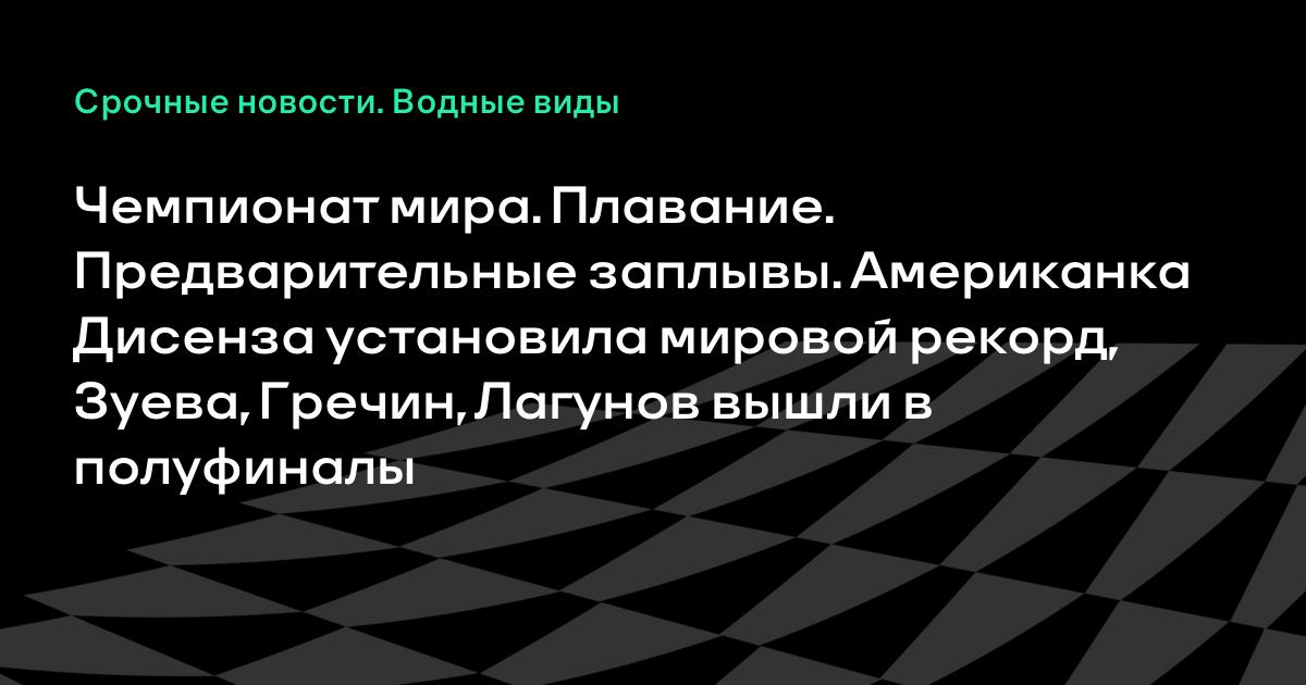 Чемпионат мира. Плавание. Предварительные заплывы. Американка Дисенза установила мировой рекорд, Зуева, Гречин, Лагунов вышли в полуфиналы