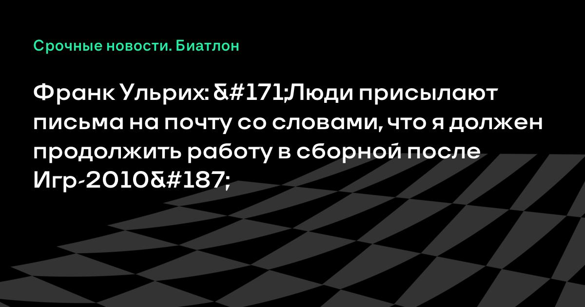 Франк Ульрих: «Люди присылают письма на почту со словами, что я должен продолжить работу в сборной после Игр-2010»