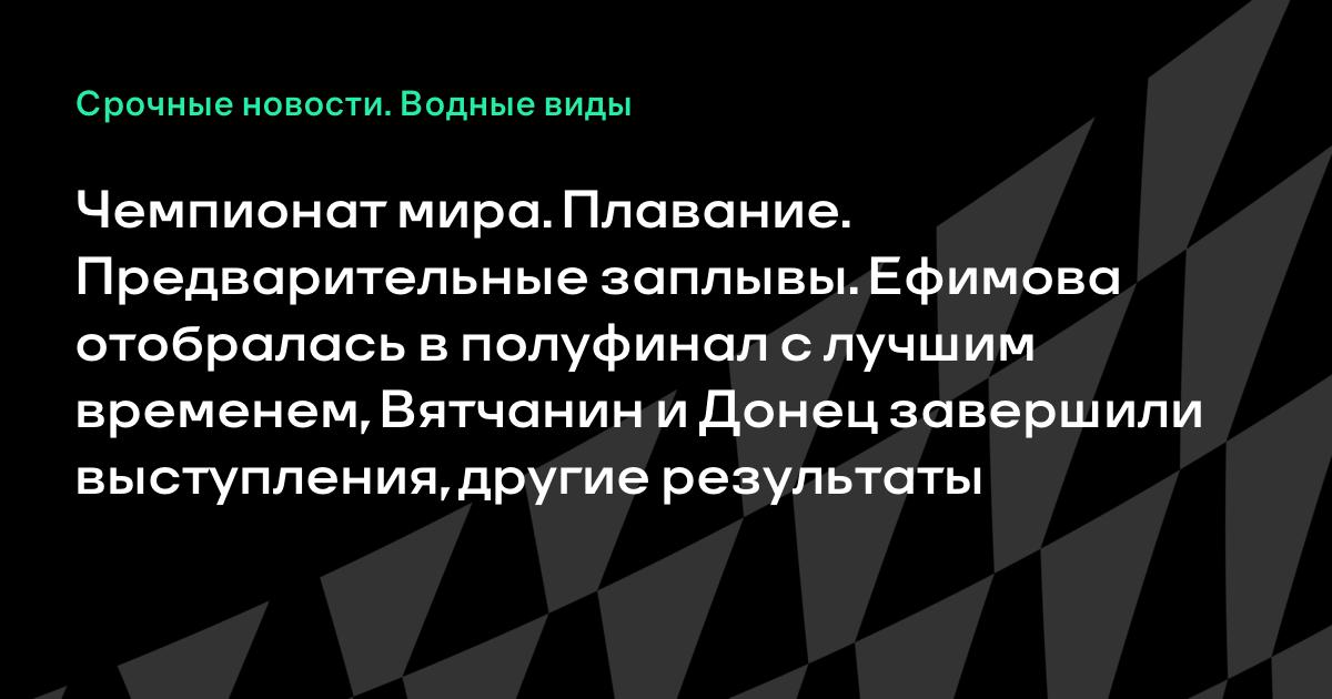 Чемпионат мира. Плавание. Предварительные заплывы. Ефимова отобралась в полуфинал с лучшим временем, Вятчанин и Донец завершили выступления, другие результаты