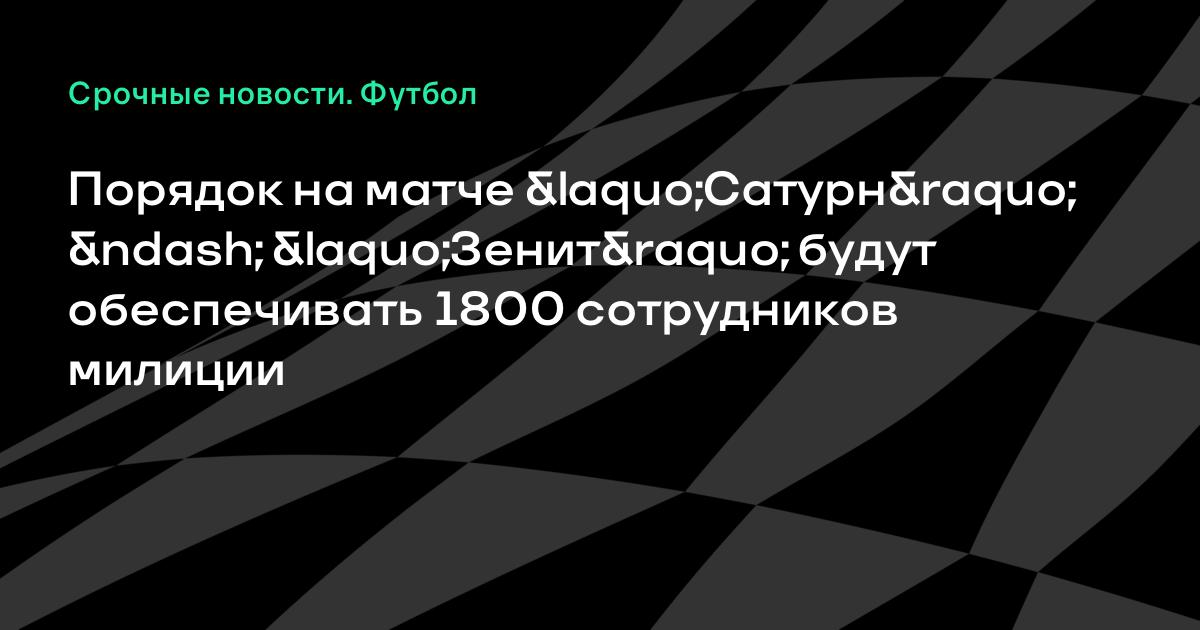 Порядок на матче 16-го тура чемпионата России «Сатурн» «Зенит» в Раменском, который состоится 2 августа, призваны обеспечивать около 1800 сотрудников милиции и военнослужащих внутренних войск.