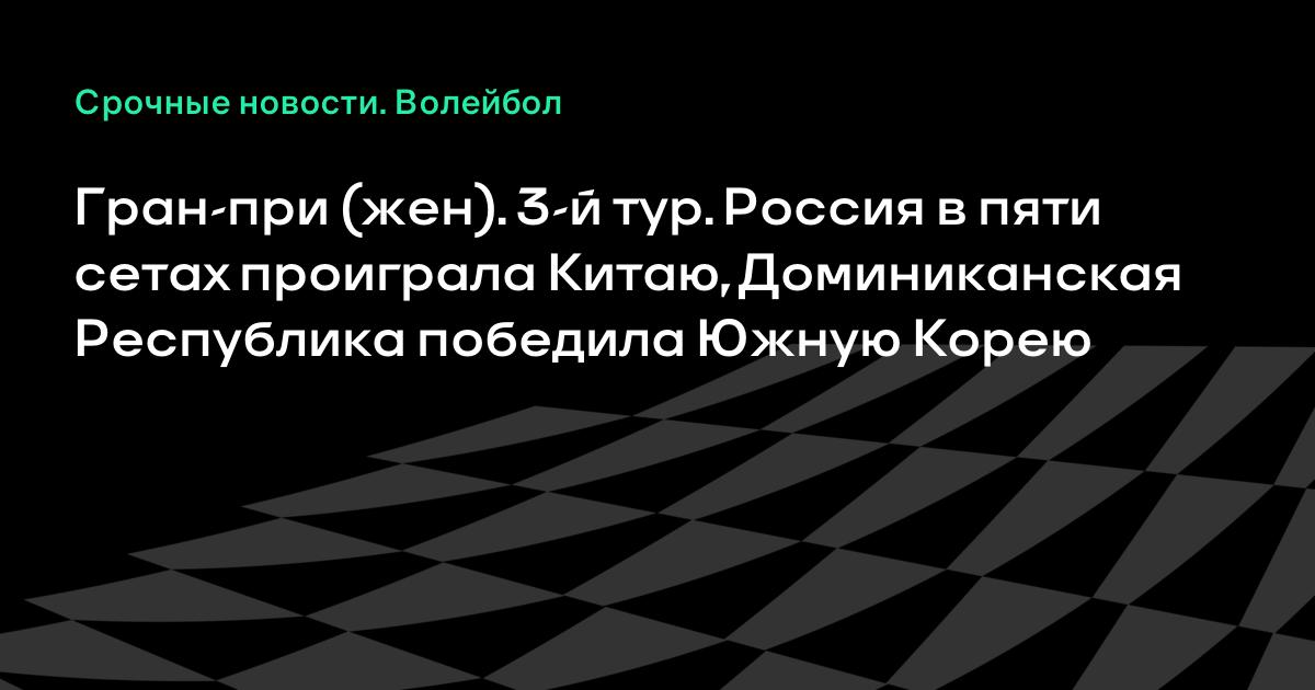 Гран-при (жен). 3-й тур. Россия в пяти сетах проиграла Китаю, Доминиканская Республика победила Южную Корею