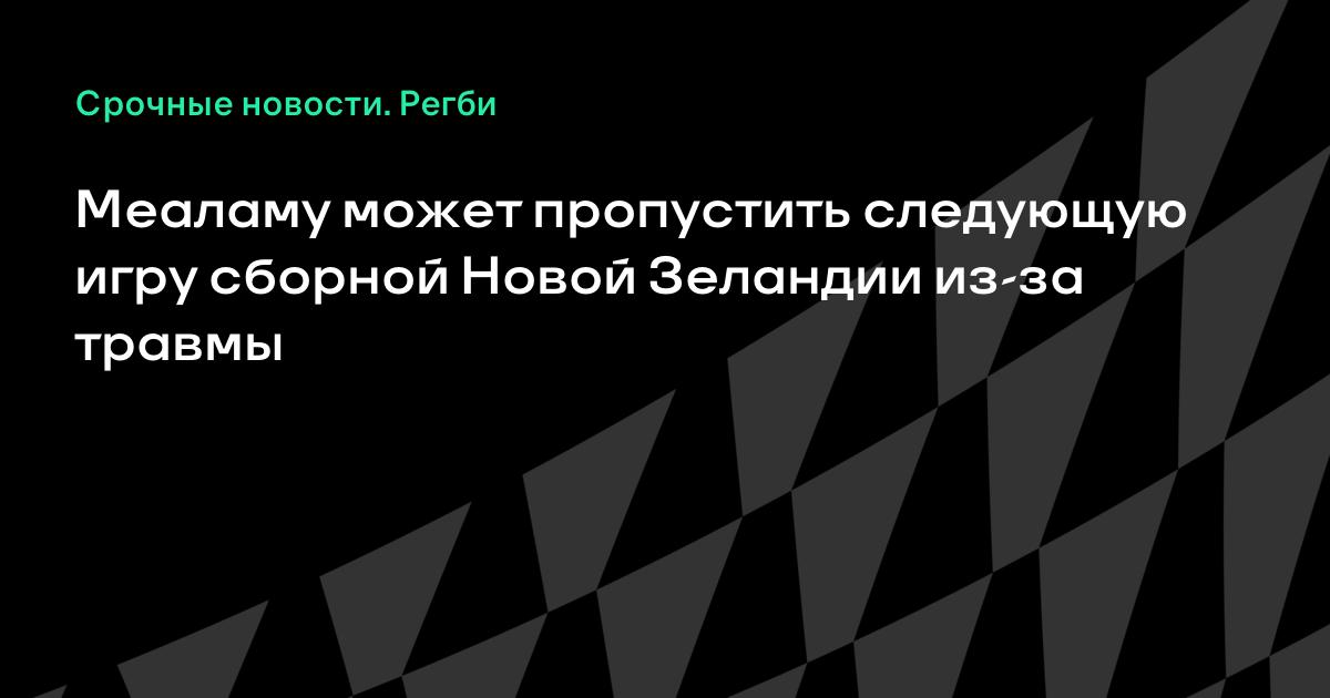 Хукер сборной Новой Зеландии Кевен Меаламу из-за травмы может пропустить следующую игру команды в Кубке трех наций, которая пройдет 22 августа в Сиднее с Австралией. Меаламу получил травму мышц грудной клетки в матче с ЮАР (19:31). По возвращению в Окленд регбист, который провел 71 тестовую встречу в карьере, пройдет обследование.