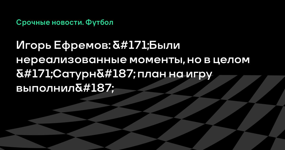 Игорь Ефремов: «Были нереализованные моменты, но в целом «Сатурн» план на игру выполнил»