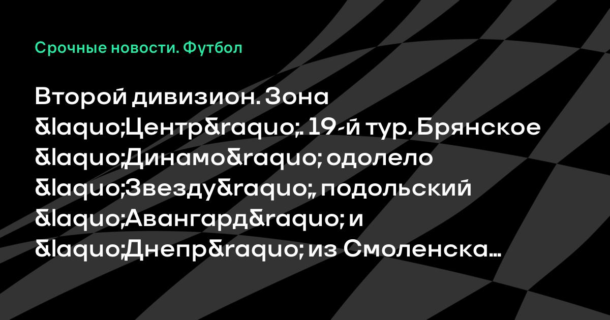 Второй дивизион. Зона «Центр». 19-й тур. Брянское «Динамо» одолело «Звезду», подольский «Авангард» и «Днепр» из Смоленска разошлись миром и другие результаты