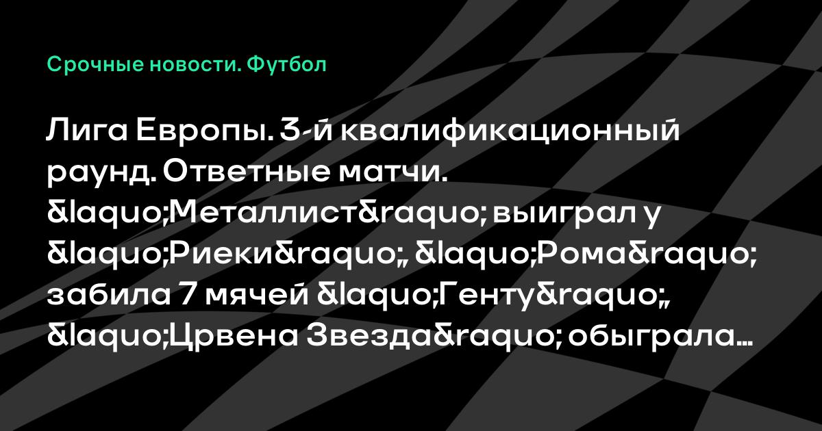 Лига Европы. 3-й квалификационный раунд. Ответные матчи. «Металлист» выиграл у «Риеки», «Рома» забила 7 мячей «Генту», «Црвена Звезда» обыграла тбилисское «Динамо» и другие результаты