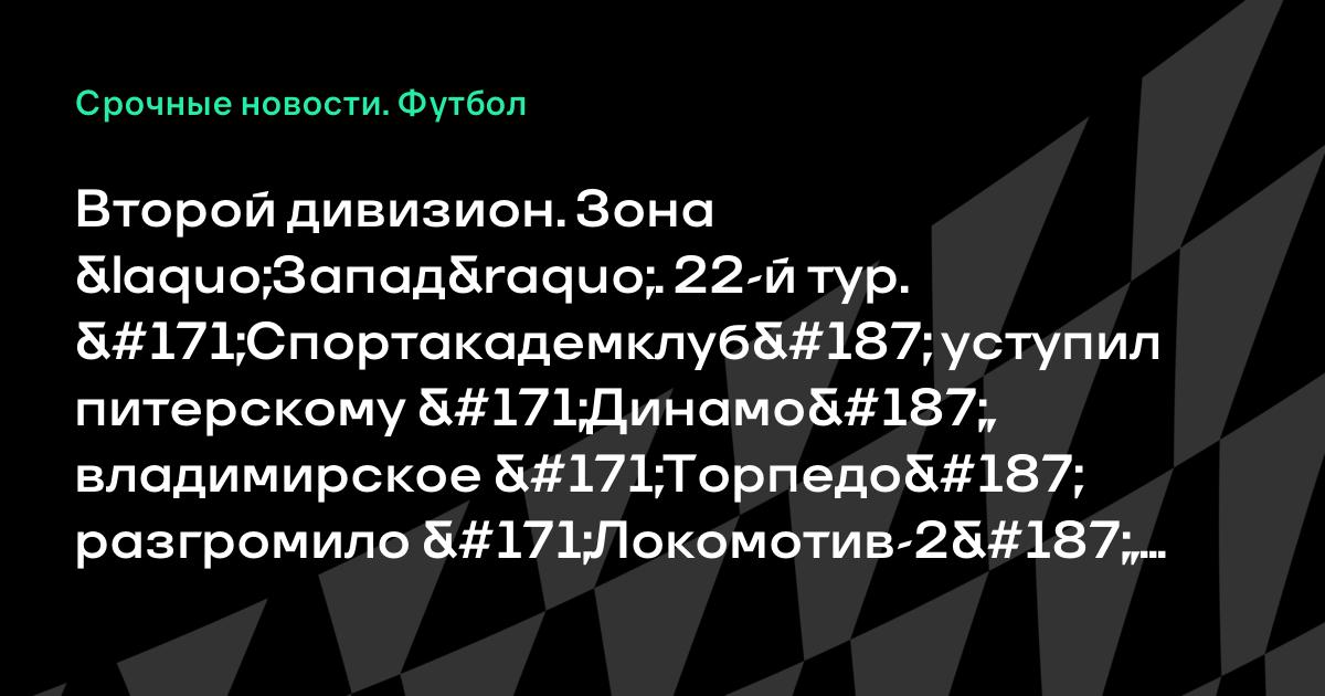 Второй дивизион. Зона «Запад». 22-й тур. «Спортакадемклуб» уступил питерскому «Динамо», владимирское «Торпедо» разгромило «Локомотив-2», «Смена-Зенит» проиграла «Шексне» и другие результаты