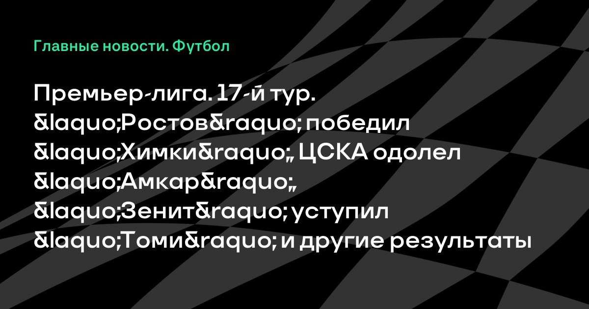 Премьер-лига. 17-й тур. «Ростов» победил «Химки», ЦСКА одолел «Амкар», «Зенит» уступил «Томи» и другие результаты
