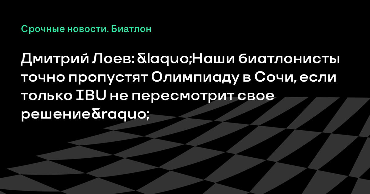 «В новых антидопинговых правилах есть одна небольшая оговорка: если спортсмен был дисквалифицирован в период между Олимпийскими играми и Олимпиада входит в срок дисквалификации, то он пропускает и следующие Игры. То есть в случае с тремя нашими биатлонистами, они уже точно пропустят Сочи-2014. Если, конечно, антидопинговый комитет и Международный союз биатлонистов не пересмотрят свое решение», цитирует Лоева Infox.ru.
