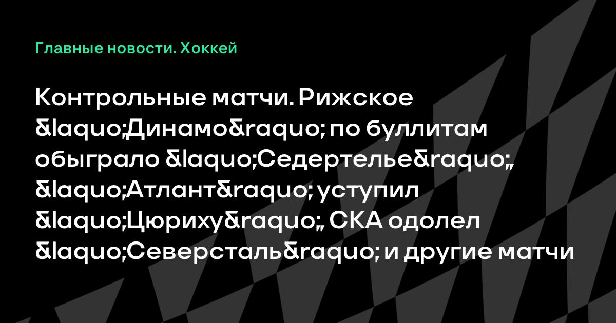Контрольные матчи. Рижское «Динамо» по буллитам обыграло «Седертелье», «Атлант» уступил «Цюриху», СКА одолел «Северсталь» и другие матчи