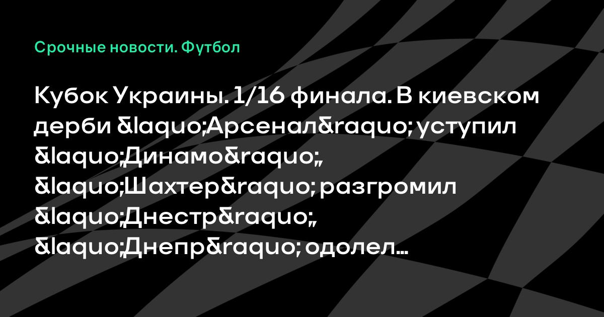 Кубок Украины. 1/16 финала. В киевском дерби «Арсенал» уступил «Динамо», «Шахтер» разгромил «Днестр», «Днепр» одолел «Закарпатье» и другие матчи