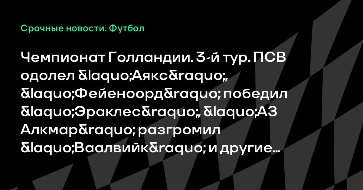 Чемпионат Голландии. 3-й тур. ПСВ одолел «Аякс», «Фейеноорд» победил «Эраклес», «АЗ Алкмар» разгромил «Ваалвийк» и другие результаты