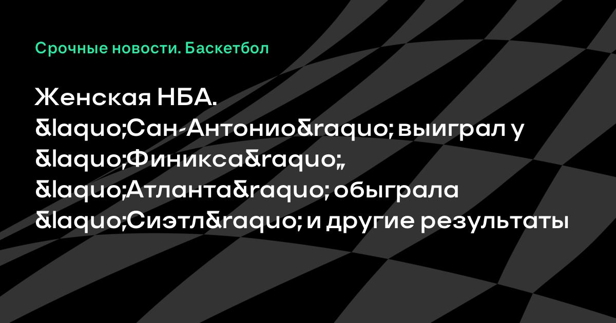 Женская НБА. «Сан-Антонио» выиграл у «Финикса», «Атланта» обыграла «Сиэтл» и другие результаты