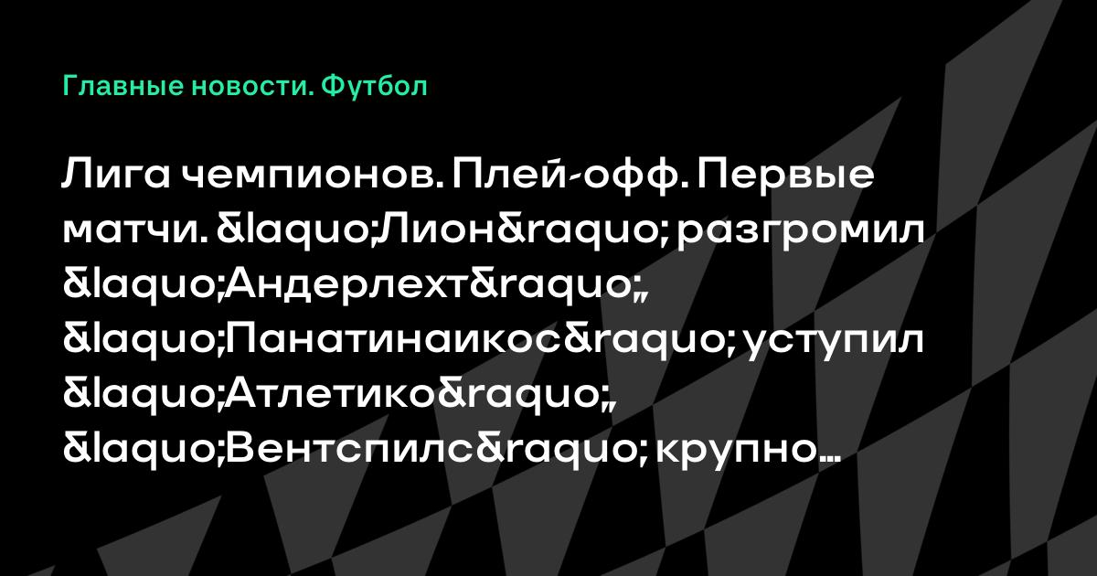 Лига чемпионов. Плей-офф. Первые матчи. «Лион» разгромил «Андерлехт», «Панатинаикос» уступил «Атлетико», «Вентспилс» крупно проиграл «Цюриху» и другие результаты