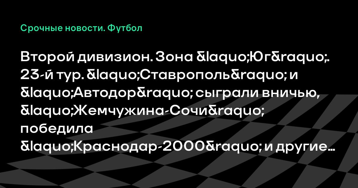 Второй дивизион. Зона «Юг». 23-й тур. «Ставрополь» и «Автодор» сыграли вничью, «Жемчужина-Сочи» победила «Краснодар-2000» и другие результаты