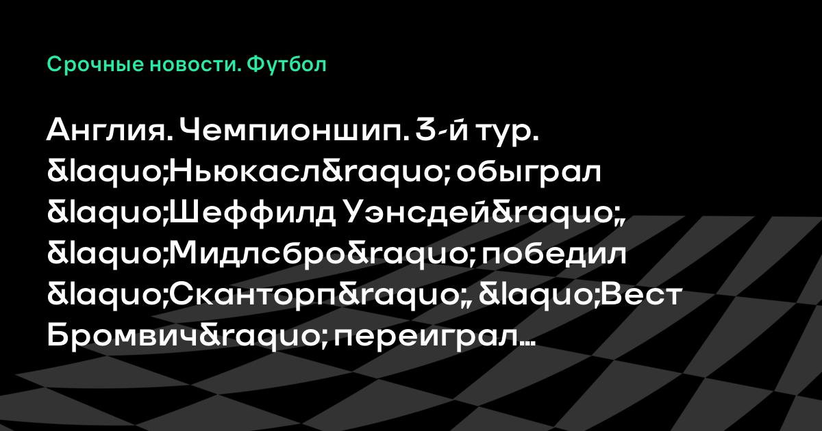 Англия. Чемпионшип. 3-й тур. «Ньюкасл» обыграл «Шеффилд Уэнсдей», «Мидлсбро» победил «Сканторп», «Вест Бромвич» переиграл «Питерборо», и другие результаты